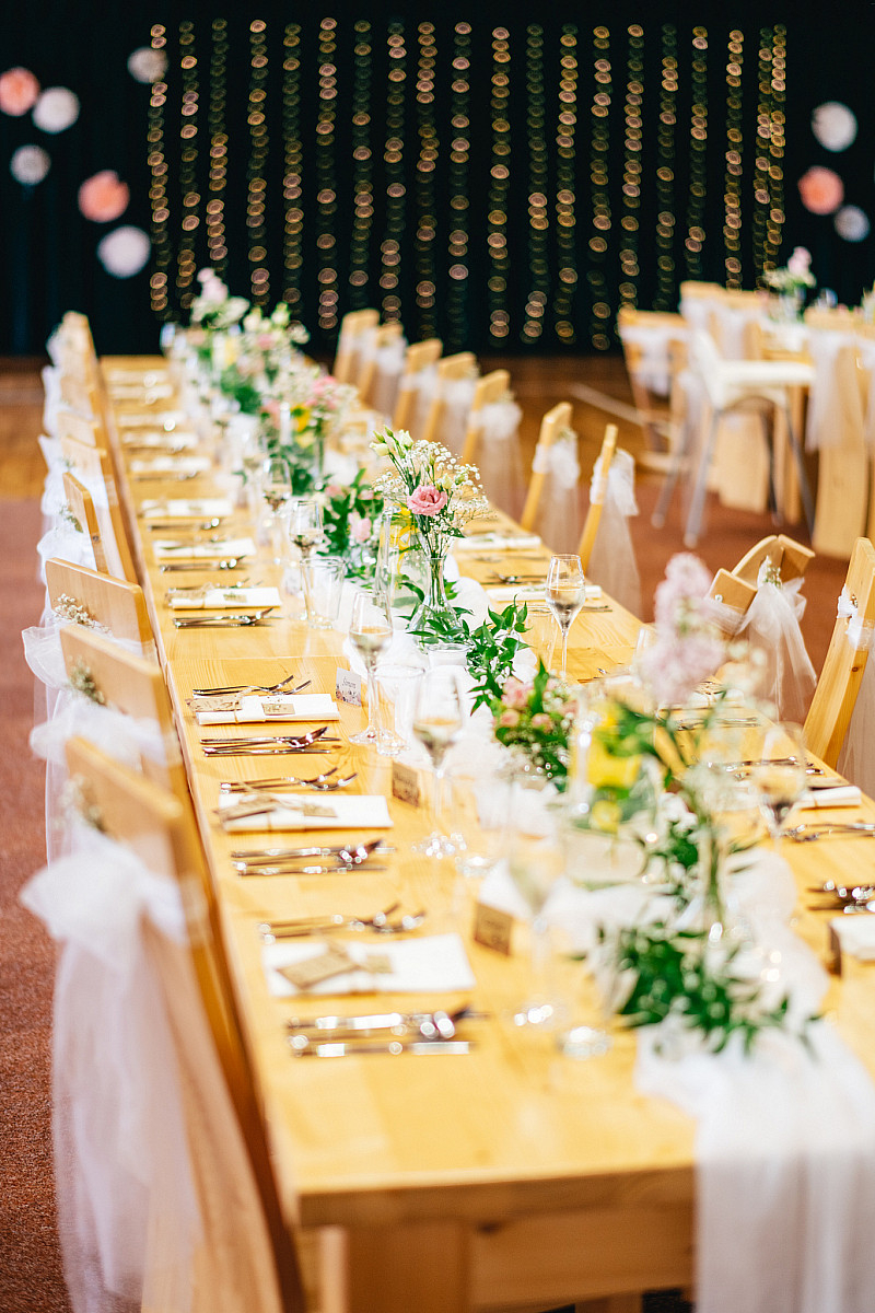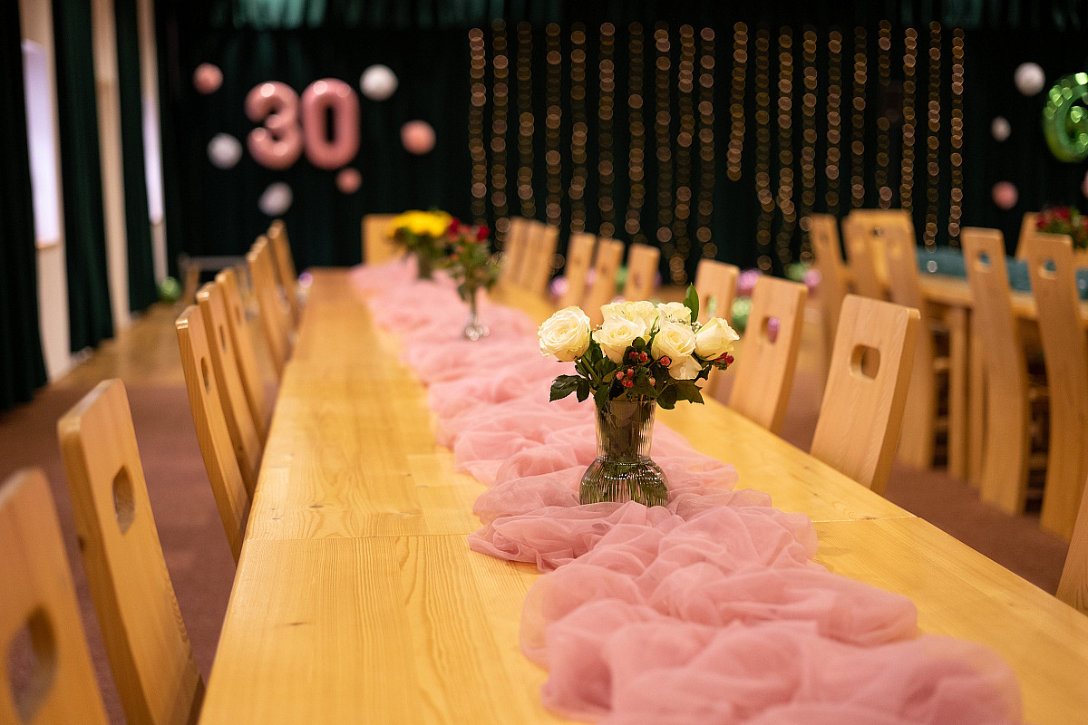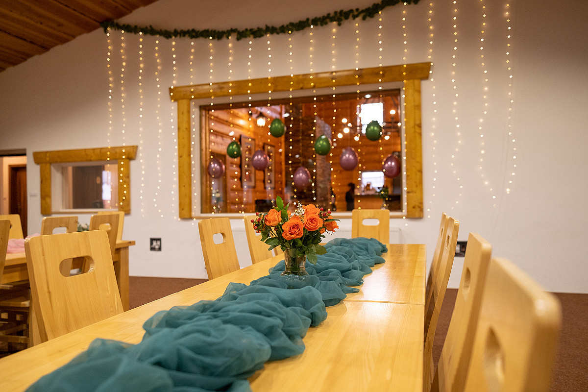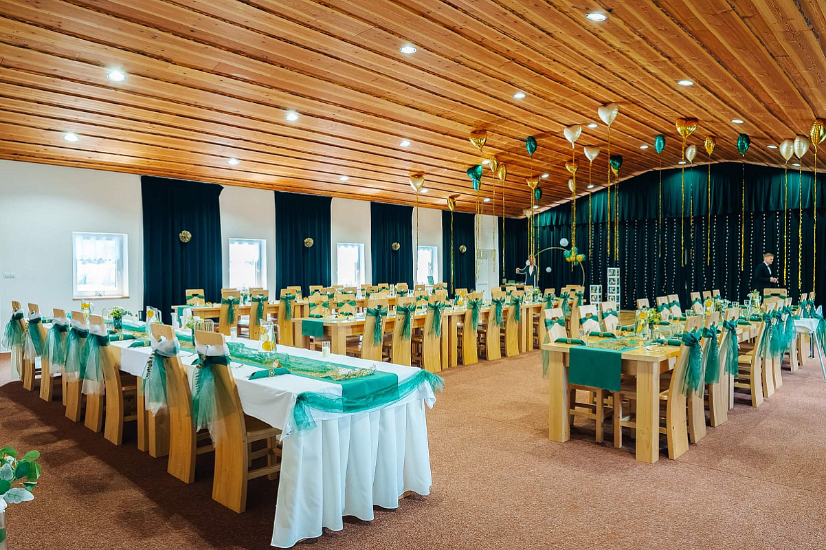 Vnitřní výzdoba vždy koresponduje s tématem akce. Splníme každé vaše přání, od barevné kompozice, přes výzdobu, až po hadbu.